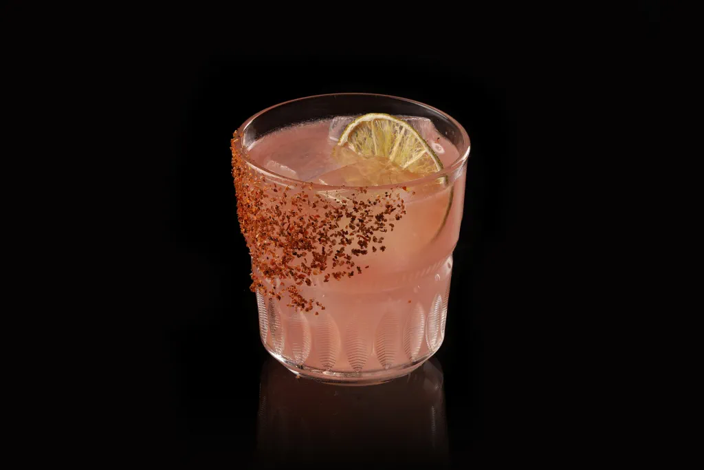 A cross between a Porn Star Martini and a chili-spiced Mezcal Margarita.