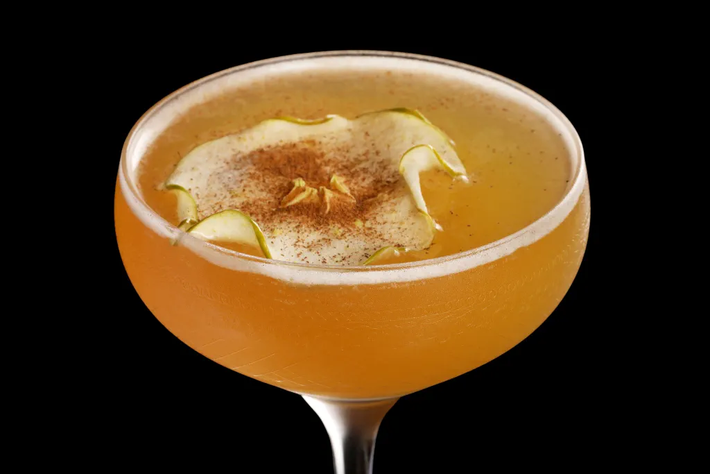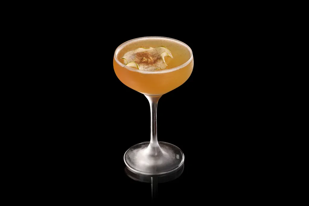 A tasty apple and cognac sour with delicate herbal and cinnamon spice.
