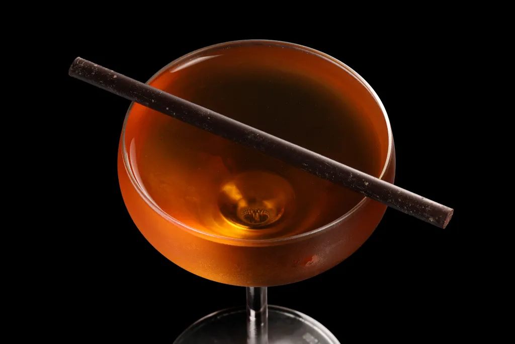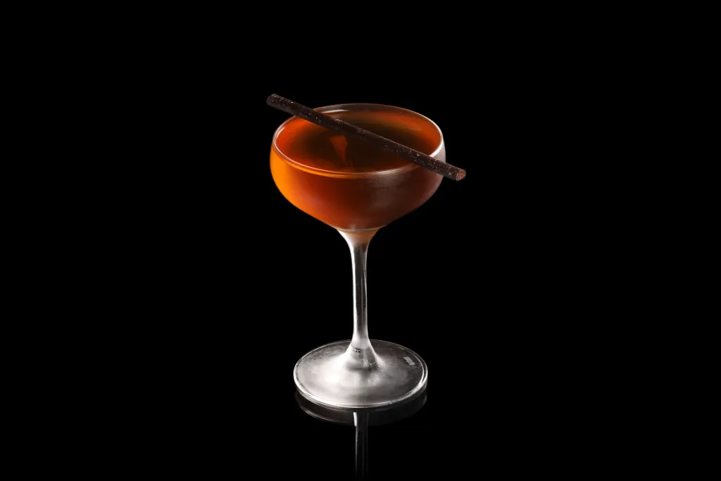 Mezcal-forward, herbal and bittersweet. An end-of-night sipper.