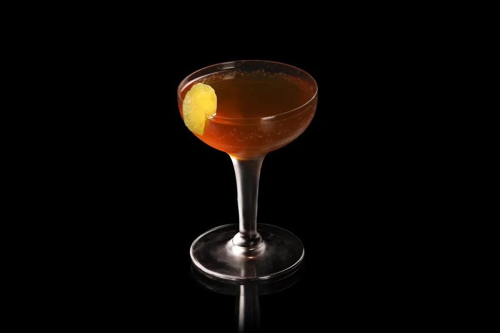 A herbal-spice liqueur and maraschino-enhanced Scotch Manhattan, freshened with a splash of orange juice.
