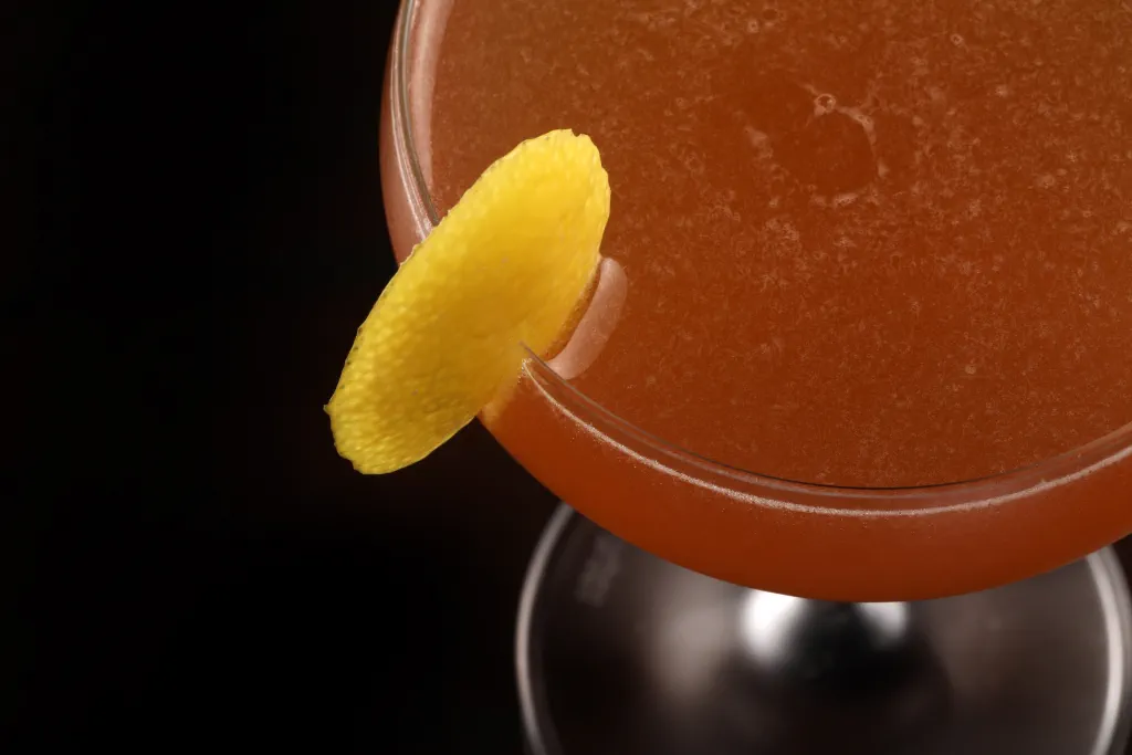Orange blossom water amplifies apricot notes in this brandy-laced sour, with sloe gin adding fruity depth of flavour.