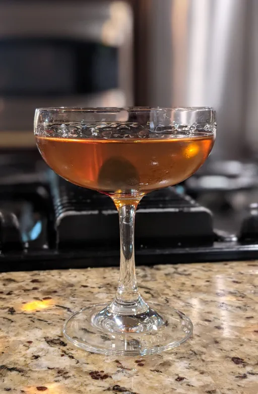 published a cocktail 2026 years ago Jeff's Red Hook Rye whiskey 50% abvVermouth amaro (Pun.)Maraschino liqueur