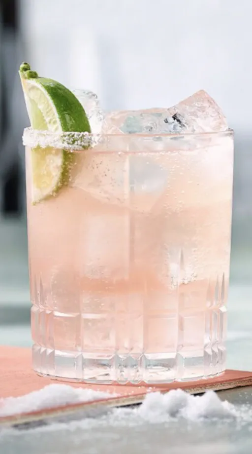 Blanco tequilaLime juiceSaltPink grapefruit soda
