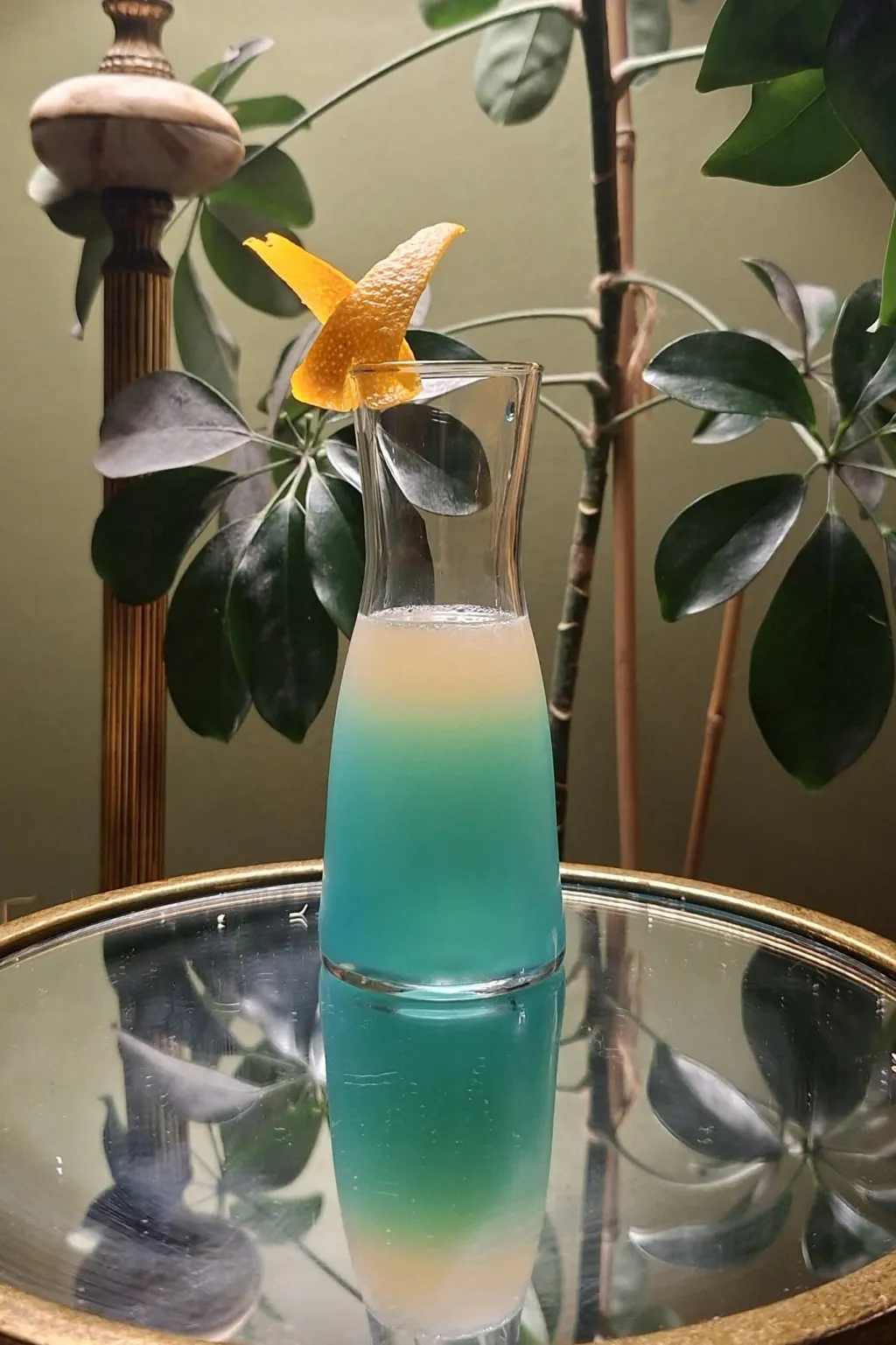 published a cocktail 7 hours ago The Motto Barrel aged geneverSaline solution 10:1Blue curaçao liqueur