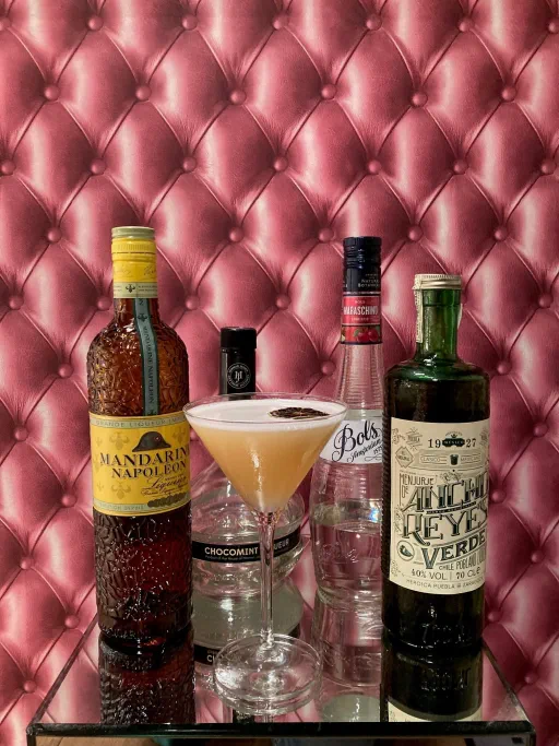 published a cocktail 2 years ago Oranje boven de Waal (Orange above the Waal) Mandarin liqueurVodkaOrange bittersChocolate Mint Liqueur