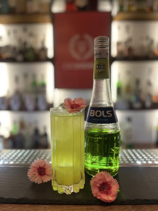 published a cocktail 1 year ago The best of both worlds Kiwi liqueurVodkaLime juiceLychee puréeBrut sparkling wine