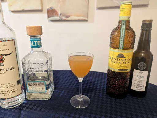 published a cocktail 1 year ago Smoked Sunshine Mandarin liqueurBlanco tequilaMezcalOloroso sherry(+ 2 more)