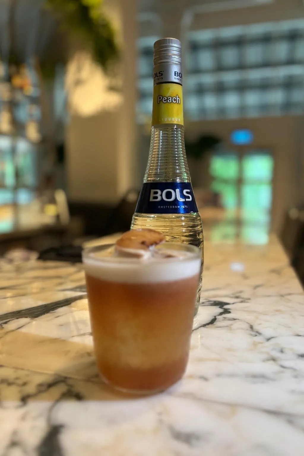 published a cocktail 20 hours ago Thymekeeper Peach schnappsSloe gin liqueurLemon juiceEgg whiteBlack pepper