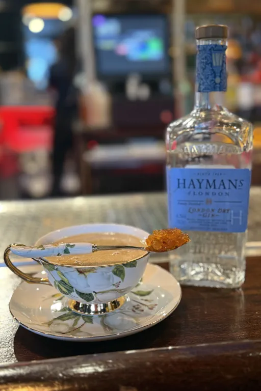 published a cocktail 11 months ago Late checkout GinRose petal liqueurHoney syrup (1:1)Lemon juice(+ 2 more)