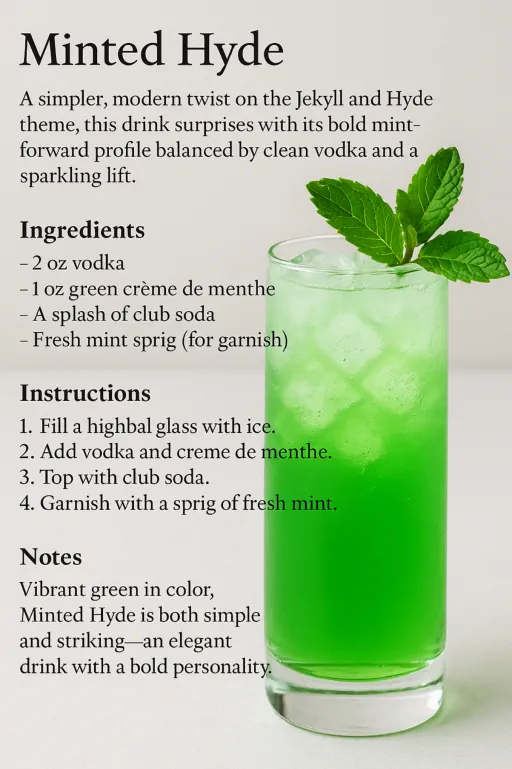 I craft cocktails with personality and story. From the bold mint of the Minted Hyde to the citrus sparkle of the Rob Hyder, the color-shifting drama of Mr. Hyde’s… show more
