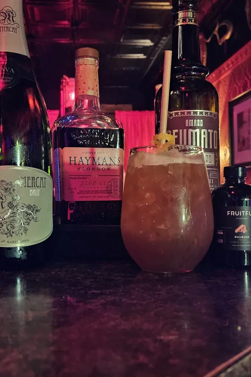 published a cocktail 11 months ago Jack Ruby Spritz Sloe gin liqueurRabarbaro liqueurLemon juiceSugar syrup 1:1(+ 2 more)