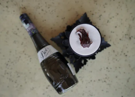 published a cocktail 1 year ago Baraa Lemon juice Cocktail foamerBlanco tequilaCrème de cassisRed wine cordial (homemade)