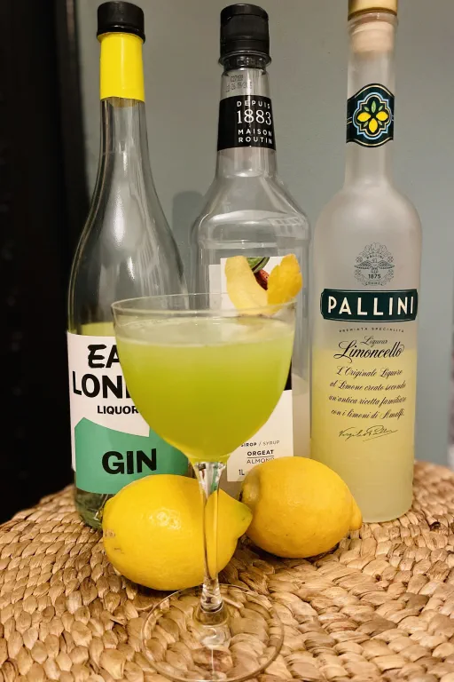 Limoncello liqueurGinOrgeat syrupLemon juiceBasil leaves
