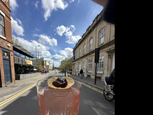 GinLemon juiceVanilla sugar syrupPomegranate liqueur