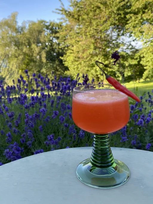 published a cocktail 1 year ago Hay & Straw red chili pepperCoriander/cilantroGinAgave syrupLime juice