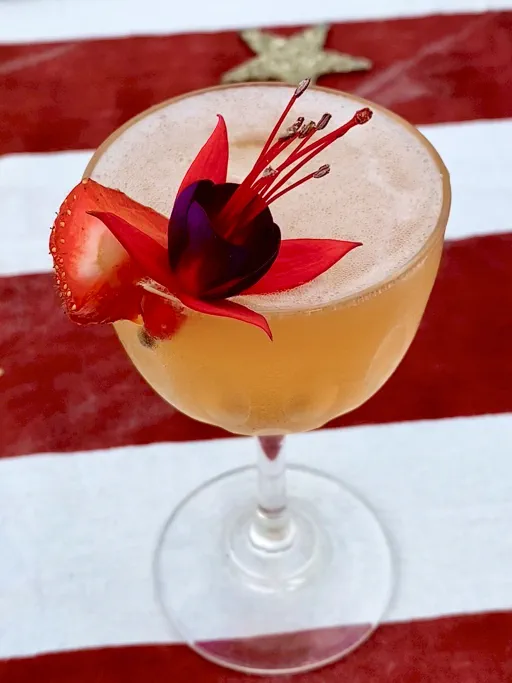 published a cocktail 1 year ago Spring Blossom Strawberry flavoured vodkaLime juiceRose waterMaraschino syrupHoney water (1:1)
