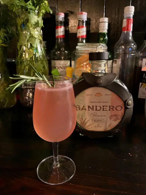 published a cocktail 1 year ago Red Bandito Pomegranate juiceLime juiceGinger beerRosemary sprigBlanco tequila
