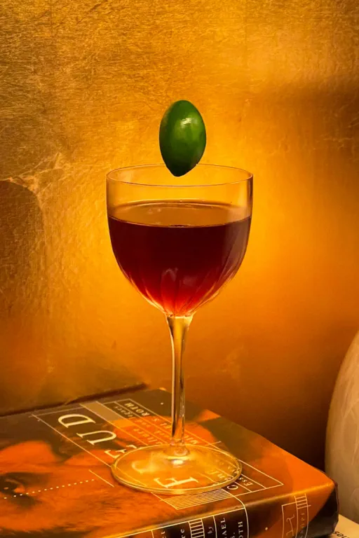 published a cocktail 1 year ago Pink Dot GinFino sherryPedro Ximénez sherryPink peppercornsSakura bitters