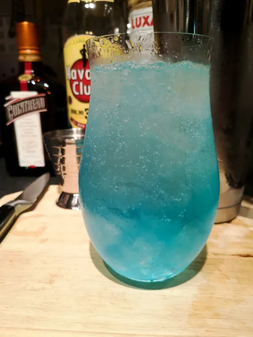 published a cocktail 2026 years ago Man Overboard Light gold rum 1-3yoTriple secMaraschino liqueurLime juiceBlue curaƧao liqueur