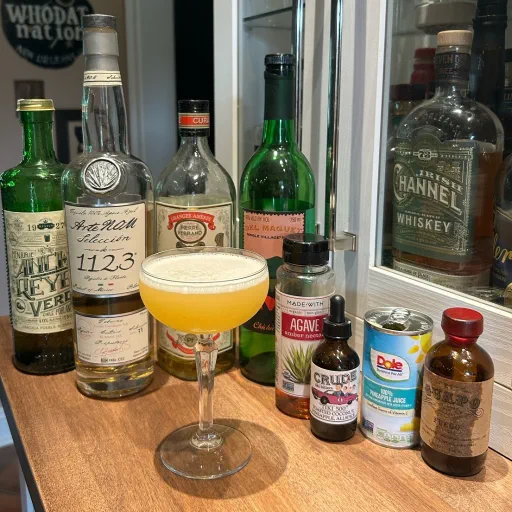 published a cocktail 2 years ago Tropics On Fire Reposado tequilaAgave syrupPineapple juiceChilli liqueur(+ 4 more)
