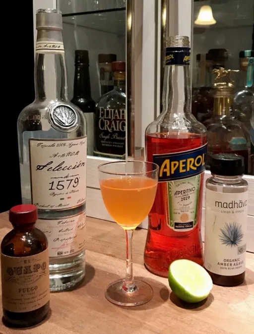published a cocktail 4 years ago Blister in the Sun ( Inge's version ) Blanco tequilaOrange-red aperitivoLime juiceAgave syrupHot chili pepper bitters