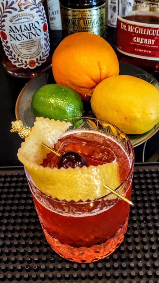 published a cocktail 2 years ago The Cherry Bella Bourbon whiskeyAmaro (e.g. Nonino)Cherry brandyLemon juice(+ 2 more)