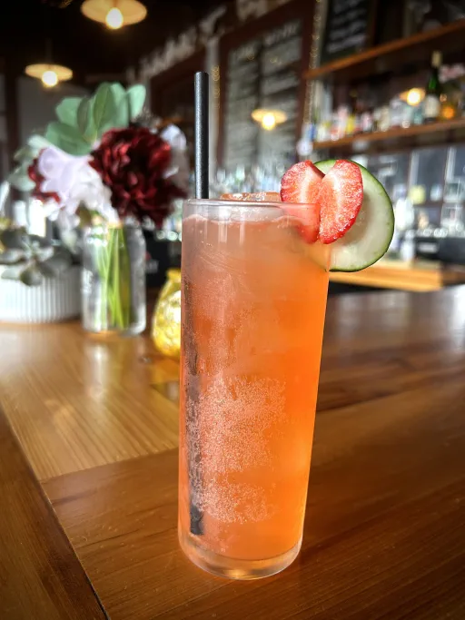 published a cocktail 2 years ago Archangel Spritz Old Tom ginOrange-red aperitivoLemon juiceSoda (club soda) waterCucumber (fresh)