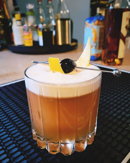 published a cocktail 1 year ago Bakewell Tart Sour (with egg white) Cognac (brandy)Amaretto liqueurMaraschino syrupLemon juice(+ 2 more)