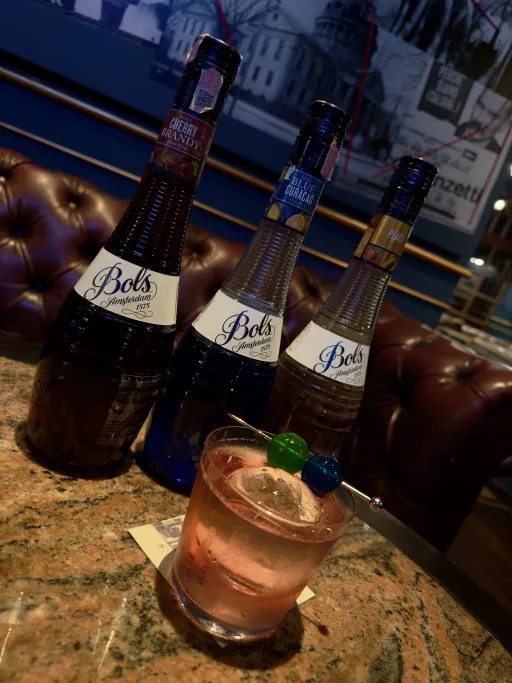 Peach schnappsCherry brandyGinLemon juiceCreole bitters